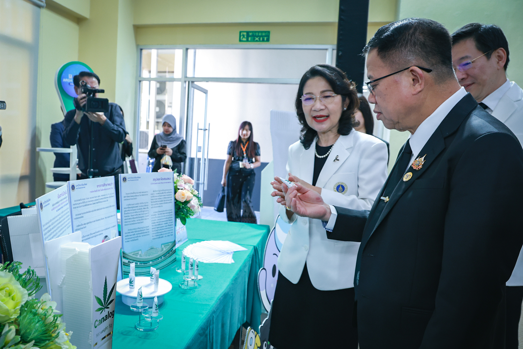 สำหรับกิจกรรมในวันนี้ได้คัดเลือก 3 ผลงานวิจัยเด่นที่มีศักยภาพสูงในการขยายผลเชิงพาณิชย์ ได้แก่นวัตกรรมผลิตสารสกัด “CBD จากกัญชงไทย” เปิดประตูพืชเศรษฐกิจสู่ยาอนาคต ปฏิวัติการรักษาอาการปวดช่องปาก ขากรรไกร ผลเทียบยาแรงแต่ปลอดภัย ไร้ฤทธิ์เสพติด โดย ศ.ดร.ทพญ.วรานันท์ บัวจีบ หัวหน้าโครงการวิจัยฯ และคณะ