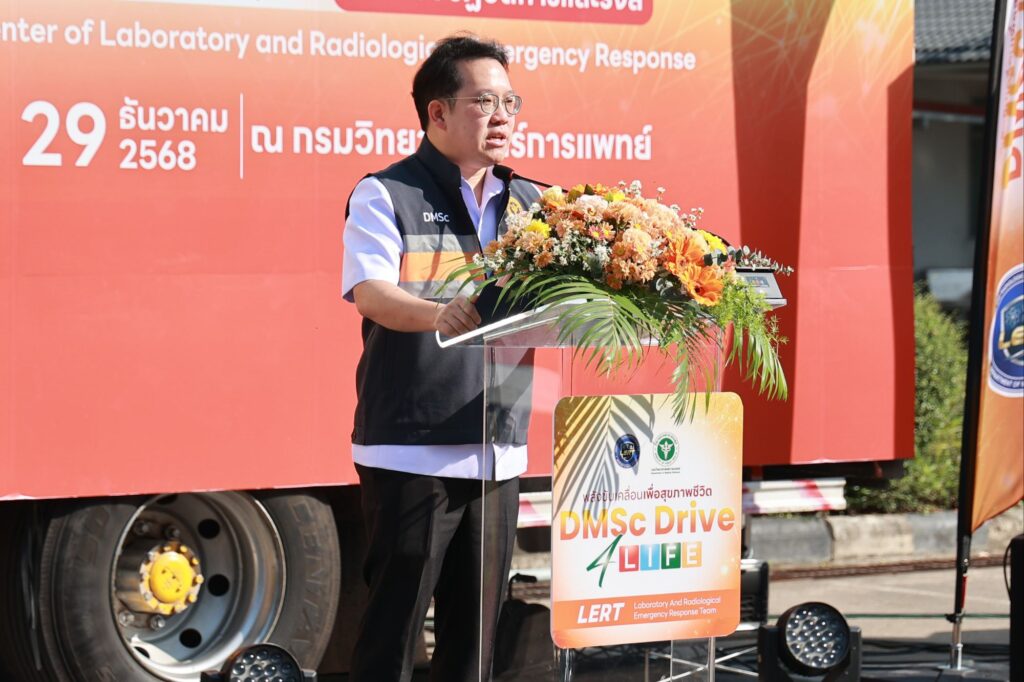เมื่อวันที่ 29 ธันวาคม 2568 ที่ลานหน้าอาคาร 8 กรมวิทยาศาสตร์การแพทย์ กระทรวงสาธารณสุข จ.นนทบุรี นายพัฒนา พร้อมพัฒน์ รัฐมนตรีว่าการกระทรวงสาธารณสุข เป็นประธานเปิดศูนย์ตอบโต้เหตุฉุกเฉินด้านห้องปฏิบัติการและรังสี (LERT) และปล่อยคาราวานรถ Mobile Lab จากส่วนกลางและศูนย์วิทยาศาสตร์การแพทย์ลงพื้นที่ตรวจสอบคุณภาพอาหาร น้ำอุปโภคบริโภค เพื่อเฝ้าระวังความปลอดภัยให้กับประชาชน โดยมี นายยอดศักดิ์ รักษาแก้ว ที่ปรึกษารัฐมนตรีว่าการกระทรวงสาธารณสุข นพ.เอกชัย เพียรศรีวัชรา รองปลัดกระทรวงสาธารณสุข ดร.นพ.สราวุฒิ บุญสุข อธิบดีกรมวิทยาศาสตร์การแพทย์ นพ.กิตติศักดิ์ อักษรวงศ์ อธิบดีกรมสุขภาพจิต ผู้บริหารกระทรวงสาธารณสุข ผู้แทนหน่วยงานภาครัฐ ภาคเอกชน สื่อมวลชน และเจ้าหน้าที่กรมวิทยาศาสตร์การแพทย์ เข้าร่วมงาน