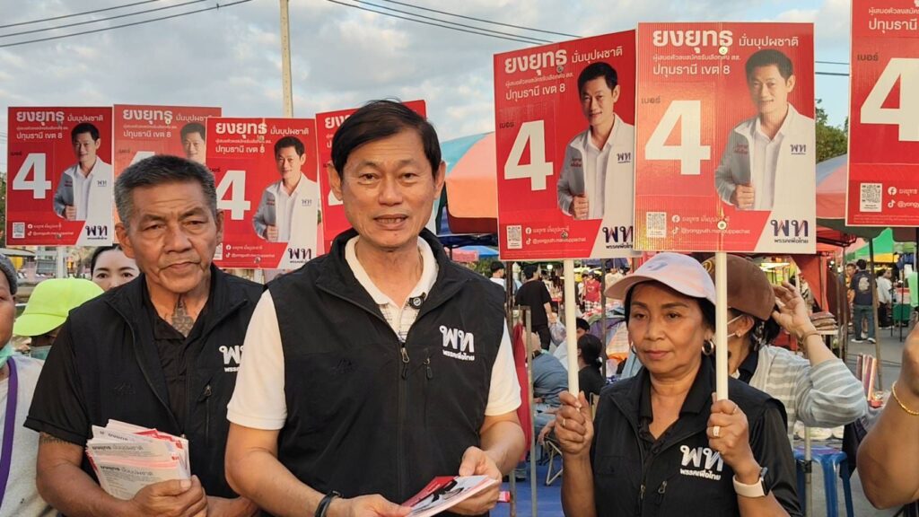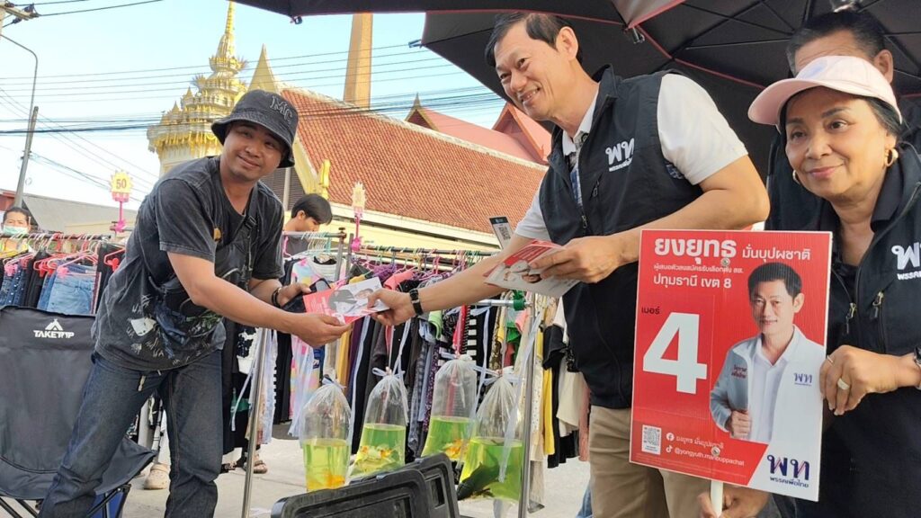 วันที่ 8 มกราคม 69 ข่าวรายงานว่า นายยงยุทธ มั่นบุปผชาติ ผู้สมัคร ส.ส.ปทุมธานี เขต 8 พรรคเพื่อไทย พร้อมทีมงานหาเสียงเดินพบปะพี่น้องประชาชนโดยการแจกใบแนะนำตัวพร้อมนโยบายของพรรคเพื่อไทยให้กับประชาชนในพื้นที่เขต 8 ที่มาจับจ่ายซื้อของตามตลาดนัดเช้า ในขณะที่ทางด้าน ผู้สมัคร ส.ส.ปทุมธานี เขต 8 พรรคเพื่อไทย โอดครวญว่ามีการกระทบกระทั่งระหว่างหาเสียงวอนหาเสียงด้วยความสร้างสรรค์ดีกว่า