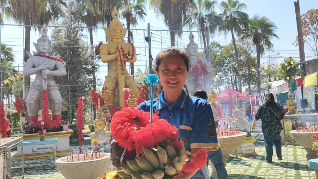 ขณะที่นางสาวอารยา สวนแก้ว เดินทางมาจากย่านคลอง 4 อำเภอลำลูกกา นำประทัดจำนวน 5,000 นัด พร้อมเครื่องเซ่นไหว้ชุดใหญ่มาแก้บนกับท้าวเวสสุวรรณ หลังจากลูกสาวสอบเข้าคณะศิลปศาสตร์ สาขาอุตสาหกรรมบริการการบิน ของมหาวิทยาลัยชื่อดังแห่งหนึ่งในจังหวัดปทุมธานีได้สำเร็จ