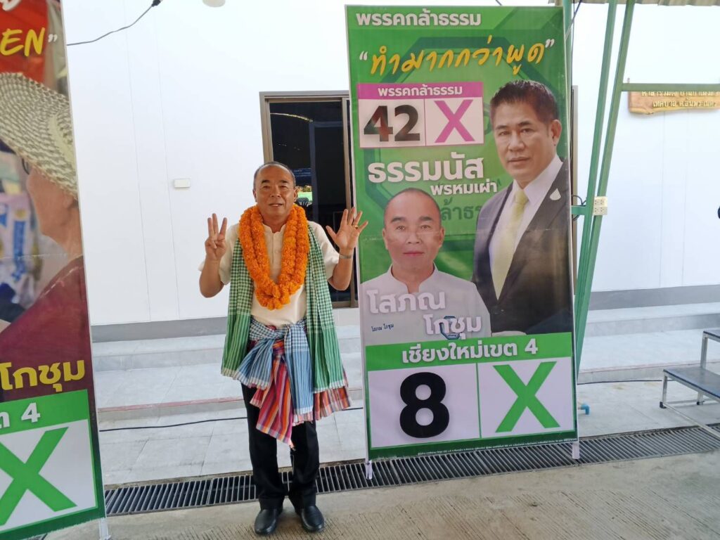 เมื่อวันที่ 20 มกราคม 2569 ที่สนามกีฬา ทต.สันพระเนตร อ.สันทราย จ.เชียงใหม่ นายโสภณ โกชุม ผู้สมัคร ส.ส.เชียงใหม่ เขต 4 หมายเลข 8 พรรคกล้าธรรม หมายเลข42 ได้พบปะประชาชนและปราศัยหาเสียงกว่า 300 คน มีนายวังนครไชยมงคล วิทยากรผู้เชี่ยวชาญบรรยายเป็นโฆษก และเป็นผู้ช่วยหาเสียง ภายใต้คำขวัญว่า ทำมากกว่าพูด และเข้าถึงง่าย พึ่งได้ทุก GEN พร้อมชูนโยพรรคกล้าธรรมและ ร.อ.ธรรมนัส พรหมเผ่า รองนายกรัฐมตรี และรัฐมนตรีว่าการกระทรวงเกษตรและสหกรณ์ ในฐานะประธานที่ปรึกษาพรรคกล้าธรรม โดยเฉพาะการออกโฉนดในที่ดิน สปก. บริหารจัดการน้ำทั้งระบบ ปุ๋ยคนละครึ่ง การพัฒนาคุณชีวิต โครงสร้างพื้นฐานและการพัฒนาแหล่งท่องเที่ยว
