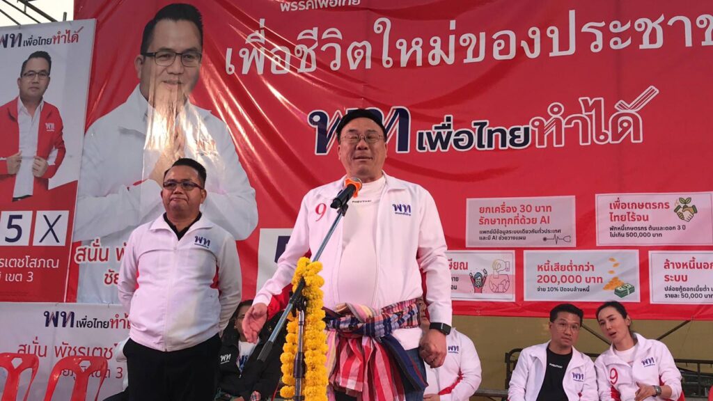 วันที่ 25 ม.ค. 2569 ที่ ณ.บริเวณ สนามกีฬาเทศบาลหนองบัวระเหว อ.หนองบัวระเหว จ.ชัยภูมิ นายจุลพันธ์ อมรวิวัฒน์ หัวหน้าพรรคพรรคเพื่อไทยพร้อมด้วย น.ส.ลิณธิภรณ์ วริณวัชรโรจน์ รองเลขาธิการพรรค ในฐานะผู้ช่วยหาเสียง พร้อมคณะ ได้เปิดเวทีปราศรัยหาเสียงช่วยผู้สมัคร สส. ชัยภูมิเขต3 นายสนั่น พัชรเตชโสภณ เบอร์ 5 และพรรคเพื่อไทยเบอร์ 9 โดยมีประชาชนชาวอ.หนองบัวระเหว กว่า5.000คนมาร่วมฟังการปราศรัยและให้การต้อนรับด้วยการคล้องพวงมาลัยกล้วยให้กับคณะหาเสียงพรรคเพื่อไทยในครั้งนี้