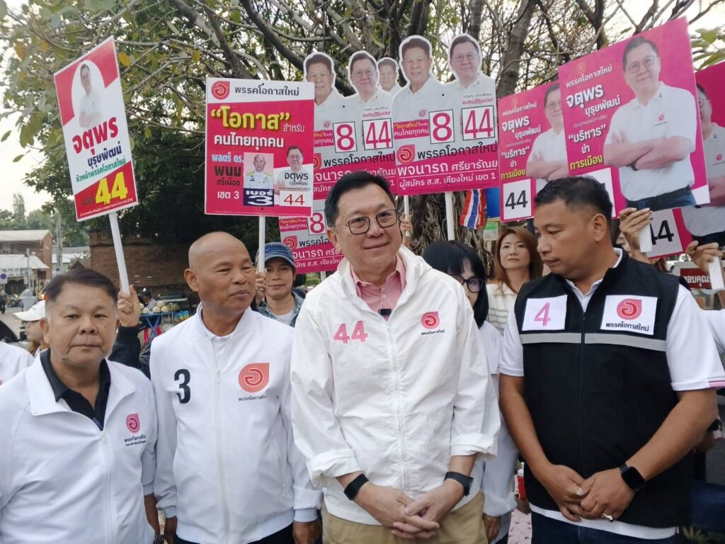 วันที่ 27 มกราคม 2569 ที่ตลาดประตูเชียงใหม่ ต.พระสิงห์ อ.เมือง จ.เชียงใหม่ นายจตุพร บุรุษพัฒน์ อดีตรัฐมนตรีพาณิชย์ และปลัดกระทรวงทรัพยากรธรรมชาติและสิ่งแวดล้อม ในฐานะหัวหน้าพรรคโอกาสใหม่ พร้อมผู้สมัคร ส.ส. เชียงใหม่ 4 เขต พรรคโอกาสใหม่ ประกอบด้วย นายพจนารถ ศรียารัณย หรือหนุ่ย ผู้สมัคร เขต 1 หมายเลข 8 พล.ต.พนม ศรีเผือด ผู้สมัคร เขต 3 หมายเลข 3 นาย กฤศอนันต์ วัฒนะ หรือ ส.ท.โอ๋ ผู้สมัคร เขต 5 หมายเลข 4 และน.ส.ฌาญาณนันท์ สุริยา ผู้สมัครเขต 8 หมายเลข 9 และทีมงานได้เดินหาเสียงกับพ่อค้าแม่ค้า แผงลอย และร้านค้าตลาดดังกล่าว