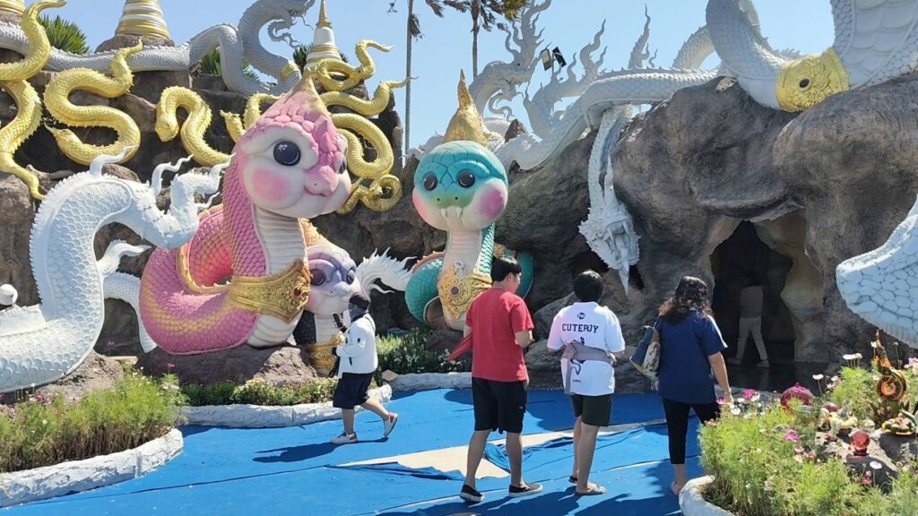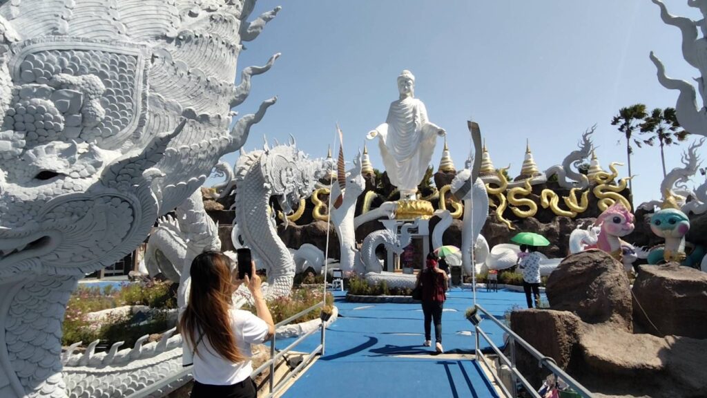 ผู้สื่อข่าวรายงานว่าที่อุทยานธรรมพญานาคพระปางเปิดโลก วัดดอนใหญ่ คลอง 10 ต.ลำลูกกา อ.ลำลูกกา จ.ปทุมธานี ยังคงคึกคักไปด้วยประชาชนที่เดินทางมากราบไหว้สักการะขอพรพ่อปู่ศรีสุทโธ แม่ย่าปทุมมา และเยี่ยมชมความงดงามของพญานาค ในลานอุทยานธรรม พร้อมกับถ่ายรูปกับพญานาคที่สวยงามโดดเด่น หลายตนอยู่ในอุทยานแห่งนี้ เพื่อเป็นที่ระลึกและ อวดกันในโซเชียล