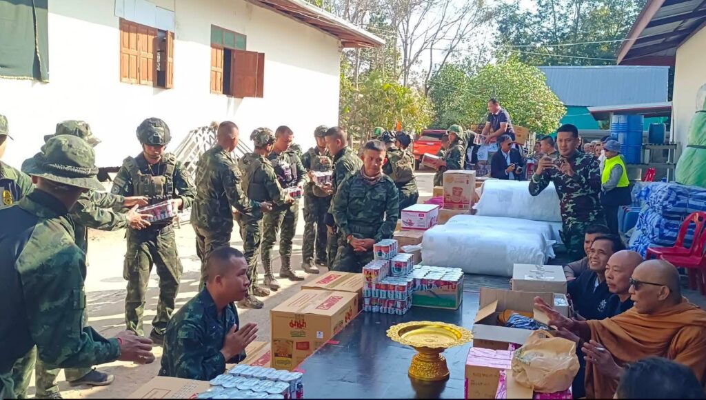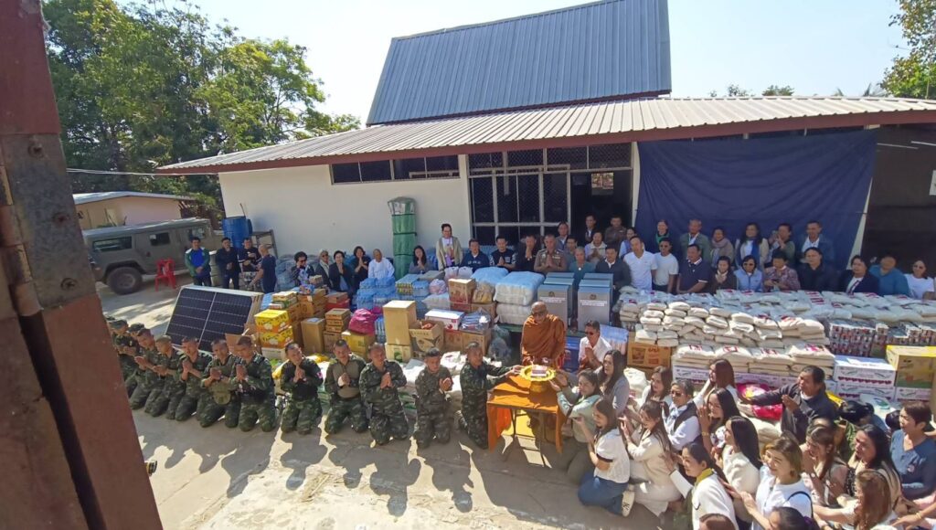 เมื่อวันที่ 28 มกราคม 2569 ผู้สื่อข่าวรายงานว่า หลวงพ่อสายทอง เตชะธัมโม เกจิชื่อดังแห่งวัดห้วยกุ่มฯ นำคณะลูกศิษย์ผู้มีจิตศรัทธาพร้อมครอบครัวฉางข้าวจังหวัดขอแก่น,โคราช ห้างบิ๊กวันโฮมมาร์หนองบัวระเหว คณะอดีตพยาบาลโรงบาลชัยภูมิรวมถึงผู้ใจบุญที่ร่วมบริจาคทั้งเอ่ยนามและไม่ได้เอ่ยนามและผู้สื่อข่าวจังหวัดชัยภูมิ รวมกว่า 100 คน ที่ร่วมทำบุญบริจาคสิ่งของ ข้าวสาร อาหารแห้ง ยารักษาโรคพร้อมแผงโซล่าเซลล์ ไปมอบให้กับพี่น้องทหารๆหน้าแนวเขตชายแดนไทย-กัมพูชาที่วัดโพธิวนาราม ตำบลตาเมียง อำเภอพนมดงรัก จังหวัดสุรินทร์ โดยมี พ.ท.อดิเรก วสันต์สกุล ผู้บังคับกองพันทหารราบที่ 24 (ผบ.พัน.ร.24 ) พร้อมด้วย ร.อ.รัฐธรรมนูญ ไตรยวงศ์ นายทหารฝ่ายส่งกำลังบำรุง กองพันทหารราบที่ 24 (ฝกบ.พัน.ร.24) นำกำลังพลส่วนหนึ่ง ให้การต้อนรับ