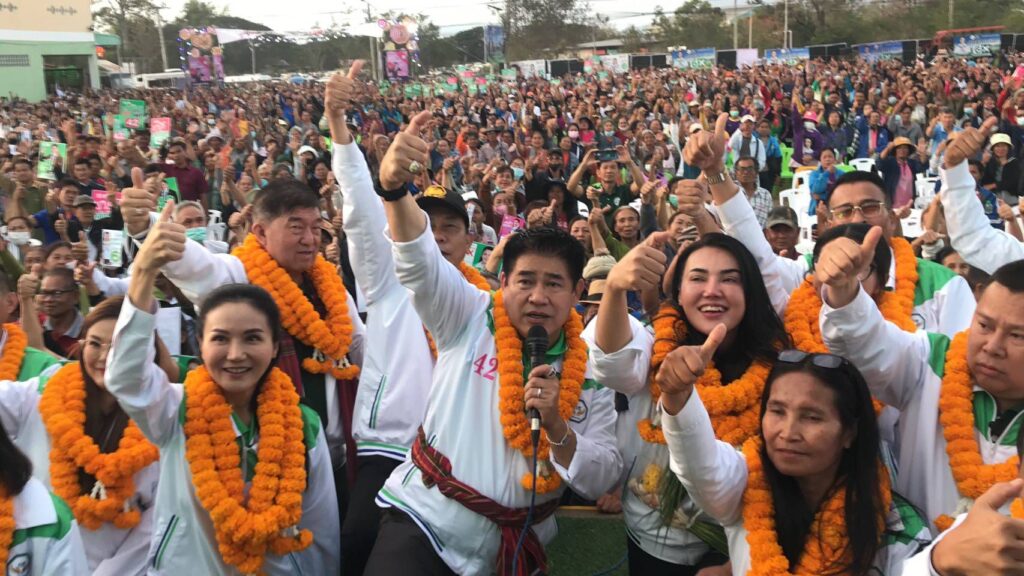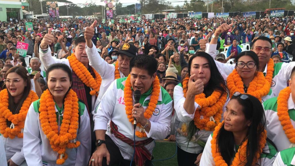 ธรรมนัส”พร้อมหน.พรรคกล้าธรรม”บุกปราศรัยใหญ่ 4 เขตชูเปลี่ยน สปก.เป็นฉโนดทองคำ ทำสงครามกับนายทุนนำเข้าสินค้าเถื่อน กระตุ้นราคาสินค้าทางการเกษตร แก้หนี้ ของเกษตรกรให้เป็นสหกรณ์แก้หนี้แก่เกษตรกร พัฒนาชัยภูมิเมืองลองให้เป็นเมืองหลัก พรรคกล้าธรรม ทำได้จริง ไม่ขายฝัน สำหรับชัยภูมิมี7เขตเลือกตั้ง ถามว่าอยากได้ทั้งหมดไหมอยากได้แต่ทั้งนี้ก็ขึ้นอยู่กับชาวบ้านที่จะเทคะแนนให้ซึ่งคาดว่าจะได้รับความสนใจและเทคะแนนให้กับพรรคอย่างภาคภูมิใจแน่นอนดูจากผลงานที่พรรคเคยทำให้กับชาวบ้านได้จริงมาแล้วหลายๆอย่าง