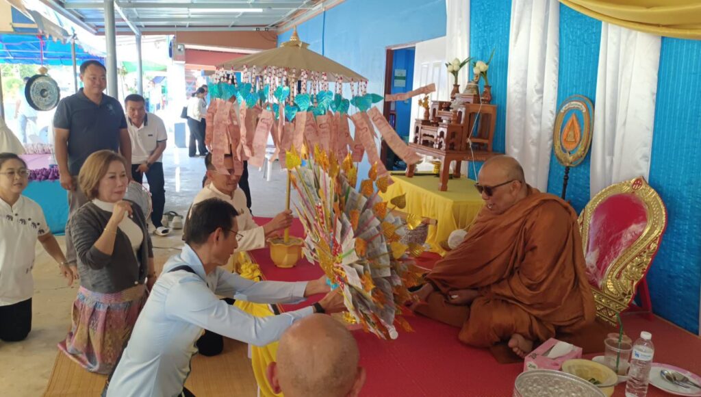 เมื่อวันนี้ 31 ม.ค. 69 ผู้สื่อข่าวรายงานว่า ที่บริเวณสนามโรงเรียนบ้านค่ายหางเรียง ต.บ้านค่าย อ.เมือง จ.ชัยภูมิ พุทธศาสนิกชน ลูกศิษย์หลวงพ่อสายทอง เตชะธัมโม ในพื้นที่และใกล้เคียงต่างนำเข้าสารอาหารแห้งมาร่วมทำบุญใส่บาตรและทอดผ้าป่าสามัคคีเพื่อสมทบทุนสร้างอาคารเรียนโรงเรียนบ้านค่ายหางเรียง ฯเนื่องจากอาคารหลังเดิมได้มีสภาพที่เก่าแก่ทรุดโทรมมาก โดย มีนาย ราชัน นาสมพงษ์ ผู้อำนวยการโรงเรียนบ้านค่ายหางเรียง และคณะครู ผู้ปกครอง-นักเรียน พุทธศาสนิกชนลูกศิษย์หลวงพ่อสายทอง ทั้งในพื้นที่และนอกพื้นที่มาร่วมทำบุญกับหลวงพ่อสายทอง เตชะธัมโม ซึ่งท่านได้เดินทางออกบิณทบาตรพร้อมด้วยช้างแสนรู้ 2 เชือก ได้แก่ พลายสตังค์กับพลายพยัคฆ์ร่วมออกเดินบิณฑบาตรเป็นที่ฮือฮาและชื่นชอบในการร่วมบิณฑบาตของช้าง 2 เชือกในครั้งนี้ด้วย ซึ่งบรรยากาศการทำบุญครั้งนี้ต่างมีผู้มีจิตศรัทธาเข้าร่วมทำบุญอย่างคับคั่งกว่า 300 คน โดยในช่วงเช้าได้มีการทำบุญตักบาตรข้าวสารอาหารแห้ง จากนั้นก็ได้ทำบุญถวายภัตตาหารเช้าแด่หลวงพ่อสายทอง เตชะธัมโม และพระภิกษุสงฆ์ จำนวน 5 รูป หลังฉันภัตตาหารเช้าเสร็จก็ร่วมทำพิธีทอดผ้าป่าสามัคคีเพื่อสมทบทุนสร้าง”อาคารเรียนหลังเก่าที่ทรุดโทรมมาก ” ทั้งนี้ยังมีช้างอีกจำนวน 2 เชือกที่มาร่วมเดินในขณะบิณฑบาตร่วมกับหลวงพ่อ เพื่อนำรายได้ไปมอบให้กับโรงเรียนอีกด้วย
