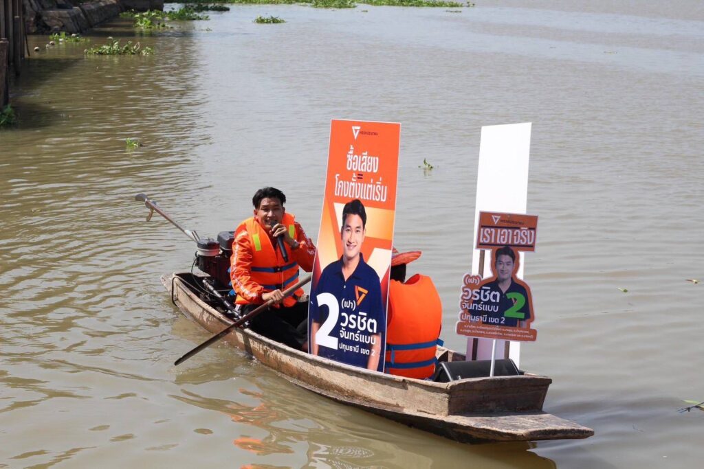 วันที่ 3 กุมภาพันธ์ 2569 ผู้สื่อข่าวรายงานว่า “เปา”วรชิต จันทร์แบบ ผู้สมัครสส.พรรคประชาชน เขต 2 เบอร์ 2 จังหวัดปทุมธานี พร้อมทีมงาน ลุยขับเรือหาเสียงตามชุมชนริมแม่เจ้าพระยาในพื้นที่อำเภอเมืองปทุมธานี และอำเภอสามโคก ตลอดเส้นทางมีชาวบ้าน และหัวคะแนนธรรมชาติในพื้นที่โบกไม้ โบกมือ ชูเบอร์ 2 และส่งเสียงเชียร์ กาส้ม 2 ใบ อย่างหนาแน่น สะท้อนถึงความต้องการของชาวบ้านที่อยากจะเห็นการเปลี่ยนแปลง อยากเห็นพรรคประชาชนเป็นรัฐบาล