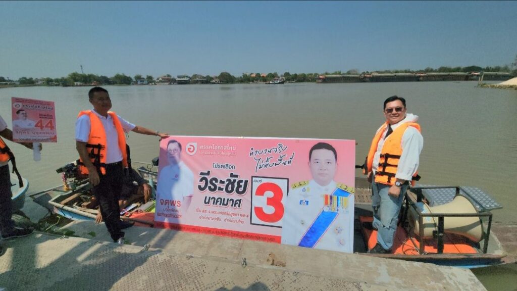 เมื่อช่วงบ่ายวันที่ 5 ก.พ.68 ที่บริเวณหน้าที่ว่าการอำเภอบางปะอิน ( หลังเก่า ) จ.พระนครศรีอยุธยา นายจุพร บุรุษพัฒน์ หัวหน้าพรรคโอกาสใหม่ เดินทางมาช่วยนายวีระชัย นาคมาศ ผู้สมัครหมายเลข 3 ของพรรคที่ลงในเขต 4 บางปะอิน บางไทร หาเสียงทางน้ำ โดยลงเรือหางยาวจากหน้าที่ว่าการอำเภอล่องไปตามแม่น้ำเจ้าพระยา ผ่านประภาคารแห่งแรกของอำเภอบางปะอิน และวัดนิเวศธรรมประวัติ โดยล่องไปถึงอำเภอบางไทร
