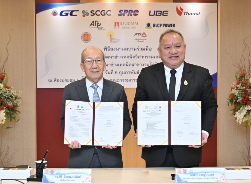 วันที่ 6 กุมภาพันธ์ 2569 นายยศพล เวณุโกเศศ เลขาธิการคณะกรรมการการอาชีวศึกษา เปิดเผยว่า สำนักงานคณะกรรมการการอาชีวศึกษา (สอศ.) ร่วมกับ มูลนิธิศึกษาพัฒน์ กลุ่มอุตสาหกรรมปิโตรเลียมและปิโตรเคมี สภาอุตสาหกรรมแห่งประเทศไทย และกลุ่มบริษัทผู้ผลิตไฟฟ้าเอกชน ลงนามบันทึกความร่วมมือโครงการพัฒนาช่างเทคนิควิศวกรรมเคมี วิทยาลัยเทคนิคมาบตาพุด (Vocational Chemical Engineering Practice College) ระยะที่ 7 (หลักสูตร V-ChEPC) และโครงการพัฒนาช่างเทคนิคสาขางานไฟฟ้าควบคุมระยะที่ 4 (หลักสูตร V-EsEPC ) ประจำปี พ.ศ. 2569-2571 พร้อมสนับสนุนงบประมาณการจัดการเรียนการสอน เพื่อยกระดับการผลิตกำลังคนอาชีวศึกษาให้สอดคล้องกับความต้องการของภาคอุตสาหกรรม ณ สำนักงานคณะกรรมการการอาชีวศึกษา กระทรวงศึกษาธิการ