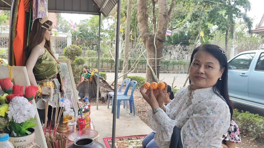 ขณะเดียวกัน นางสาวพรธิพา เนตรรัตนะ ได้นำส้มและน้ำแดงมาแก้บน หลังจากถูกรางวัลใหญ่ในงวดที่ผ่านมา โดยก่อนหน้านี้ตนเคยถวายชุดไทย 3 ชุด และได้โชคตามที่ขอไว้ จึงเดินทางกลับมาแก้บนอีกครั้ง นางสาวพรธิพายังกล่าวอีกว่าหลังจากมาขอพร ชีวิตมีแต่สิ่งดี ๆ เข้ามา การทำมาหากินราบรื่น และรู้สึกว่าสิ่งไม่ดีหรือคนที่ไม่เหมาะสมค่อย ๆ หายไปจากชีวิต นอกจากนี้ นางสาวพรธิพาเคยมีอาการหมอนรองกระดูกเคลื่อนบริเวณหลัง ซึ่งนอกจากการทำกายภาพบำบัดอย่างต่อเนื่องแล้ว ยังเชื่อว่าพรจากแม่ตะเคียนมีส่วนช่วยให้ปัจจุบันอาการดีขึ้นจนกลับมาเป็นปกติ โดยมองว่าหากมีศรัทธา คิดดี ทำดี และสวดมนต์ไหว้พระ สิ่งดี ๆ ก็จะตามมา ก่อนเดินทางกลับ นางสาวพรธิพาได้ล้วงลูกบอลเสี่ยงทาย ได้เลข 919 เพื่อนำไปลุ้นโชคในงวดถัดไป