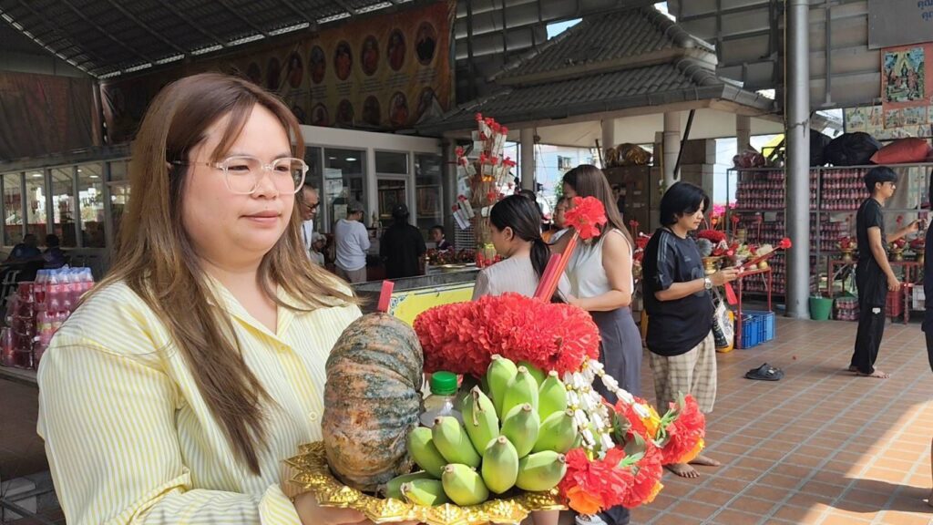 ด้านนางสาวมนันยา เมฆตั้ง เดินทางมาจากย่านนวนคร นำน้ำแดงจำนวน 2 แพ็ก พร้อมเครื่องเซ่นไหว้ มาแก้บนต่อองค์ท้าวเวสสุวรรณ หลังประสบความสำเร็จได้รับรางวัลใหญ่จากบริษัท สร้างความปลาบปลื้มใจให้กับเธอเป็นอย่างมาก นางสาวมนันยาเล่าว่า ตลอดระยะเวลา 8 ปีของการทำงาน เธอไม่เคยได้รับรางวัลจากการจับฉลากหรือกิจกรรมลุ้นโชคภายในบริษัทเลยแม้แต่ครั้งเดียว จนทำให้เชื่อมาตลอดว่าตนเองเป็นคน “ไม่มีดวง” ด้านโชคลาภ และแทบไม่คาดหวังกับการลุ้นโชคใดๆอีก ต่อมาเธอได้เห็นข่าวเกี่ยวกับความศักดิ์สิทธิ์ของท้าวเวสสุวรรณผ่านสื่อโซเชียล และได้รับคำแนะนำจากเพื่อนร่วมงานที่เคยมาขอพรแล้วประสบความสำเร็จตามที่ตั้งใจไว้ แม้ในใจจะยังไม่มั่นใจนัก แต่ด้วยความตั้งใจอยากเปิดโอกาสให้ตัวเองอีกสักครั้ง เธอจึงตัดสินใจเดินทางไปขอพร เมื่อไปถึง เธอได้ตั้งจิตอธิษฐานขอ “เปิดดวง” ด้านโชคลาภ และขอโอกาสใหม่ ๆ ให้เข้ามาในชีวิต เพราะที่ผ่านมาไม่เคยมีโชคในเรื่องนี้เลย หลังจากนั้นเพียงประมาณ 2 สัปดาห์ บริษัทได้จัดงานเลี้ยงประจำปี พร้อมกิจกรรมจับฉลากรางวัลใหญ่เช่นทุกปี แต่ครั้งนี้แตกต่างออกไป เพราะชื่อที่ถูกประกาศว่าได้รับรางวัลกลับเป็นชื่อของเธอ นับเป็นครั้งแรกในรอบ 8 ปีที่เธอได้รับรางวัลจากการจับฉลาก และยังเป็นรางวัลใหญ่ระดับกลางที่มีมูลค่าน่าพอใจ สร้างความดีใจและตื่นเต้นอย่างมาก เธอยังกล่าวอีกว่าสิ่งที่เกิดขึ้นเป็นกำลังใจสำคัญให้กับตนเองว่า บางครั้งชีวิตอาจต้องการเพียงจังหวะเวลา ความเชื่อมั่น และความกล้าที่จะเปิดใจลองอีกครั้ง เพื่อให้เกิดการเปลี่ยนแปลงที่ไม่คาดคิดแบบในวันนี้ และวันนี้เธอจึงเดินทางกลับมาเพื่อถวายของแก้บนและกล่าวคำขอบคุณพร้อมทั้งขอพรใหม่อีกครั้งกับท้าวเวสสุวรรณ และก่อนเดินทางกลับยังได้จุดธูปเสี่ยงทายได้เลข 67 กลับไปลุ้นโชคในโอกาสต่อไปด้วย