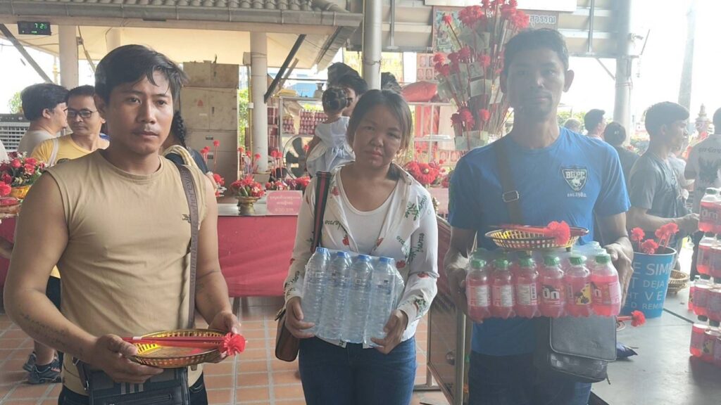 ทางด้านนายชัยชีนะ ชาวไทใหญ่ นำน้ำแดง 1 แพค น้ำดื่ม 1 แพคพร้อมเครื่องเซ่นไหว้เดินทางมาแก้บนท้าวเวสสุวรรณ หลังโชคดีได้รับโชคลาภเป็นครั้งแรก นายชัยชีนะ เล่าว่าตนเป็นแรงงานรับจ้างมำทำงานอยู่ย่านคลองแปด และเป็นครั้งแรกที่ได้รับโชคลาภจากการมาไหว้ขอพรกับท้าวเวสสุวรรณ ซึ่งถือว่าประสบความสำเร็จตั้งแต่ครั้งแรก ในการมาครั้งแรกตั้งใจมาเพื่อทำบุญเป็นหลัก ไม่ได้คาดหวังหรือร้องขอสิ่งใด เมื่อมาแก้บนครั้งนี้ทำให้ตนรู้สึกภูมิใจและสบายใจมากขึ้น ส่วนเงินที่ได้ตนจะเอาไว้ใช้จ่ายในครอบครัวและทำบุญต่อไปเรื่อยๆ และก่อนกลับได้จุดธูปมงคลได้เลข 70 นำกลับไปลุ้นครั้งที่ 2 ต่อไป