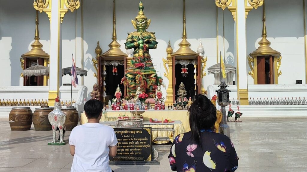 ผู้สื่อข่าวรายงานว่า บรรยากาศที่วัดบึงบาประภาสะวัต คลอง10 ตำบลบึงบา อำเภอหนองเสือ จังหวัดปทุมธานี คึกคักไปด้วย ประชาชนสายมูและสายบุญ จากที่ต่างๆเดินทางมากราบไหว้ขอพรและแก้บนท้าวเวสสุวรรณ ไอ้ไข่วัดบึงบา แม่ตะเคียนทอง แม่ตะเคียนสร้อยสุวรรณณา และสิ่งศักดิ์สิทธิ์ภายในวัด กันอย่างต่อเนื่องตั้งแต่ช่วงเช้าเป็นต้นมา ซึ่งตอนนี้นอกจากมาแก้บนขอพรกับไอ้ไข่วัดบึงบากันเป็นส่วนใหญ่แล้ว ยังมีแม่ตะเคียนทองที่เป็นกระแสในโซเชียล ที่ได้รับความศรัทธาและความสนใจกันเป็นจำนวนมากอยู่ในช่วงนี้ เนื่องจากมีผู้มาขอพรแล้วสมหวังไปหลายราย ทั้งนำรูปปั้นมาถวายและชุดไทยมาถวายแก้บนกันจึงเต็มพื้นที่ศาล