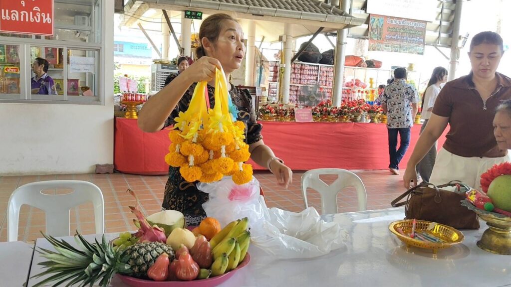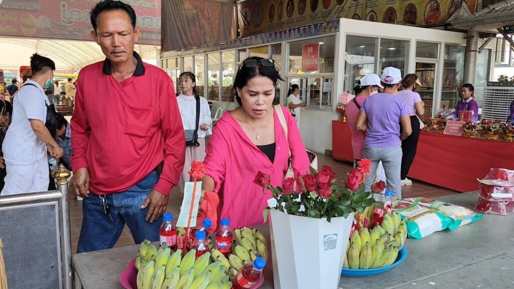 ทางด้านนางสาวสำเร็จ ไข่ระวี นำกล้วยน้ำว้า 9 หวี น้ำแดง 9 ขวด กุหลาบ 9 ดอก เดินทางมาจากย่านประเวศ กทม. มาแก้บนกับท้าวเวสสุวรรณหลังได้เงินโอนคืน 30,000 กว่าบาท นางสาวสำเร็จกล่าวว่าตนเองประกอบอาชีพทำต้นไม้และดอกไม้ประดิษฐ์ ใช้ชื่อเพจว่า “ช่างแหลมต้นไม้ประดิษฐ์” รับจ้างทำดอกไม้ประดิษฐ์ส่งมอบให้กับผู้ที่ต้องการทั่วไป วันหนึ่งตนได้สั่งซื้อดอกไม้ประดิษฐ์มาเป็นจำนวนมากเพื่อไปมาทำต้นไม้ประดิษฐ์ให้ลูกค้าที่ภูเก็ตแต่ปรากฎว่าสินค้าที่ส่งมาไม่ตรงปกจึงตีคืนสินค้าไปแต่ไม่มีผลตอบรับกลับมาเป็นเวลานานมาก ตนเองจึงเกิดความรู้สึกกังวลใจและร้อนใจเป็นอย่างมาก เพราะตนไม่มีหลักฐานอะไรนอกจากบัญชีการโอนเลยกลัวว่าเขาจะไม่คืน ตนจึงได้เดินทางมาขอพรกับท้าวเวสสุวรรณ ว่าขอให้ได้เงินที่โอนไปคืน ซึ่งก่อนหน้านี้ตนได้มาขอพรกับท้าวเวสสุวรรณในเรื่องโชคลาภก็โชคดีมาหลายงวดแล้ว ผลปรากฏว่าหลังจากที่ตนได้ขอพรไปแค่ข้ามคืนไม่ถึงวัน (ขอพร23 มีค.ได้ 24 มีค.69) เจ้าของสินค้าดอกไม้ประดิษฐ์ก็โอนเงินมาให้ตน 7,000 บาทก่อน ตนจึงนำเงินไปซื้อดอกไม้ประดิษฐ์ แล้วรีบนำไปติดตั้งให้กับลูกค้าที่ภูเก็ตเพราะลูกค้าได้โทรมาเร่ง ว่าจะถึงวันที่กำหนดส่งมอบสินค้าแล้ว พอรุ่งขึ้นอีกวัน(25 มีค.69) เจ้าของสินค้าก็โอนเงินที่เหลือมาอีก 23,500 บาทกลับคืนมา ตนเองรู้สึกดีใจเป็นอย่างมาก วันนี้ตนได้ติดตั้งต้นไม้ประดิษฐ์ให้ลูกค้าที่ภูเก็ตเสร็จแล้ว ตนจึงรีบเดินทางกลับมาแก้บนกับท้าวเวสสุวรรณดังกล่าว และก่อนกลับยังได้จุดธูปเสี่ยงทายได้เลข 59 677 นำกลับไปลุ้นโชคอีกต่อด้วย