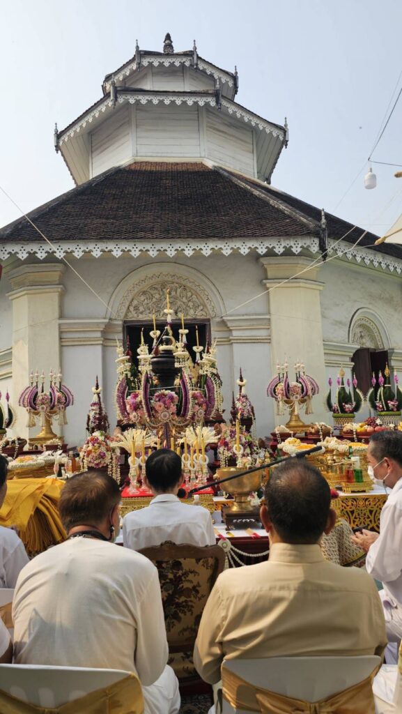 เมื่อเวลา 09.09 น. วันที่ 6 เมษา ยน 2569 ที่บริเวณด้านหน้าพระมหาธาตุเจดีย์ทรงแปดเหลี่ยม วัดเชียงยืน ต.ศรีภูมิ อ.เมือง จ. เชียงใหม่ นายวารินทร์ บัววิรัตน์เลิศ ประธานมูลนิธิอาจารย์วารินทร์ บัววิรัตน์เลิศและมูลนิธิข่วงพระเจ้าล้านนา ประกอบพิธีบวงสรวงเทพยดา อารักษ์ และสิ่งศักดิ์สิทธิ์ ตามคติความเชื่อของล้านนา เพื่อความเป็นสิริมงคล และความร่มเย็นเป็นสุขแก่ชุมชนและบ้านเมือง โดยมีผู้ทรงคุณวุฒิ คณะกรรมการวัด และผู้เกี่ยวข้องเข้าร่วมพิธี โดยมีพิธีทั้งภาคเช้า และภาคค่ำ ตามลำดับ