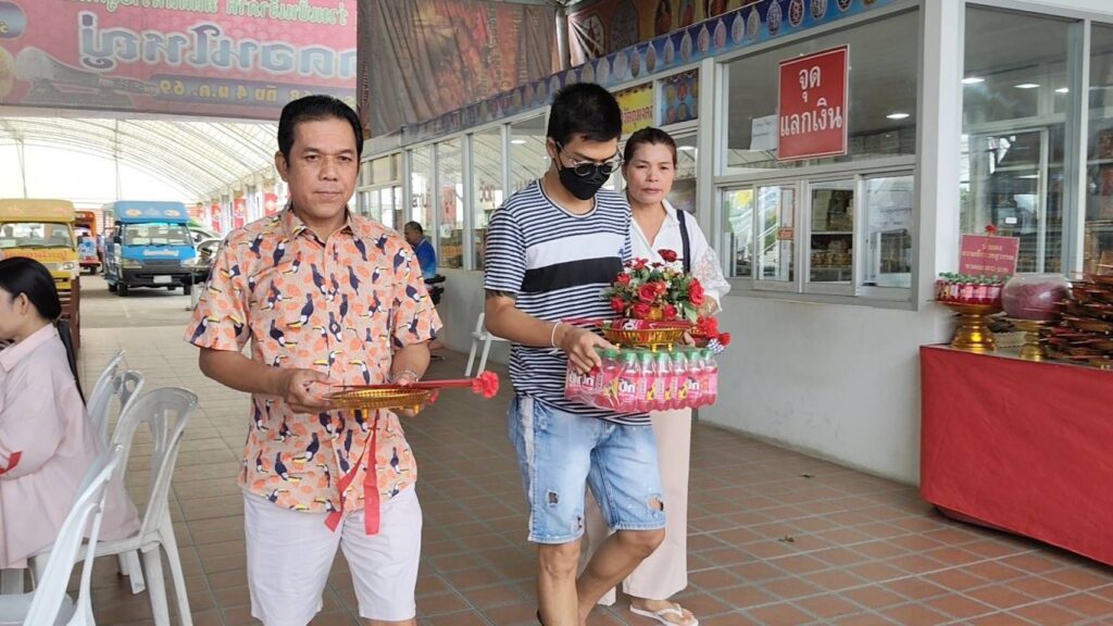 ทางด้านนายยุรนันท์ ทัศนา นำน้ำแดง 9 ขวด กุกลาบ 9 ดอกพร้อมด้วยเครื่องเซ่นไหว้มาแก้บนท้าวเวสสุวรรณหลังลูกชายสอบเข้าโรงเรียนดังได้สำเร็จ นายยุรนันท์กล่าวว่าตนเดินทางมาเพื่อแก้บนกับท้าวเวสสุวรรณในเรื่องลูกชายที่สามารถสอบติดเข้าเรียนต่อได้ตามที่ลูกชายของตนได้ตั้งเป้าหมายไว้ ซึ่งลูกชายของตนนั้นต้องการสอบเข้าเรียนที่โรงเรียนสวนกุหลาบปทุมธานี นายยุรนันท์ยังกล่าวอีกว่าแม้ส่วนตัวตนและภรรยาจะมีความมั่นใจในความสามารถของลูกชายอยู่แล้วก็ตาม แต่การพรนั้นถือเป็นที่พึ่งทางใจอย่างหนึ่งตามความเชื่อของชาวพุทธที่ช่วยให้เกิดความสบายใจและสร้างความเป็นสิริมงคลให้แก่ครอบครัวในช่วงเวลาสำคัญของการเริ่มต้นการศึกษาใหม่ของลูกชาย ซึ่งภรรยาขอตนได้ขอพรกับท้าวเวสสุวรรณไว้ตั้งแต่ช่วงก่อนสอบในช่วงเดือนที่ผ่านมา หลังจากสอบเสร็จอีกประมาณ 1 เดือนทางโรงเรียนก็ประกาศผลสอบออกมาแล้วผลปรากฎว่าลูกชายของตนก็สอบติดได้เข้าเรียนจริง และวันนี้เป็นวันมอบตัวของลูกชายที่โรงเรียนพอดี ตนจึงถือโอกาสพาครอบครัวเดินทางมาแก้บนตามที่ได้สัญญาเอาไว้ดังกล่าว และก่อนกลับยังได้จุดธูปเสี่ยงทายได้เลข 80 นำกลับลุ้นโชคอีกด้วย