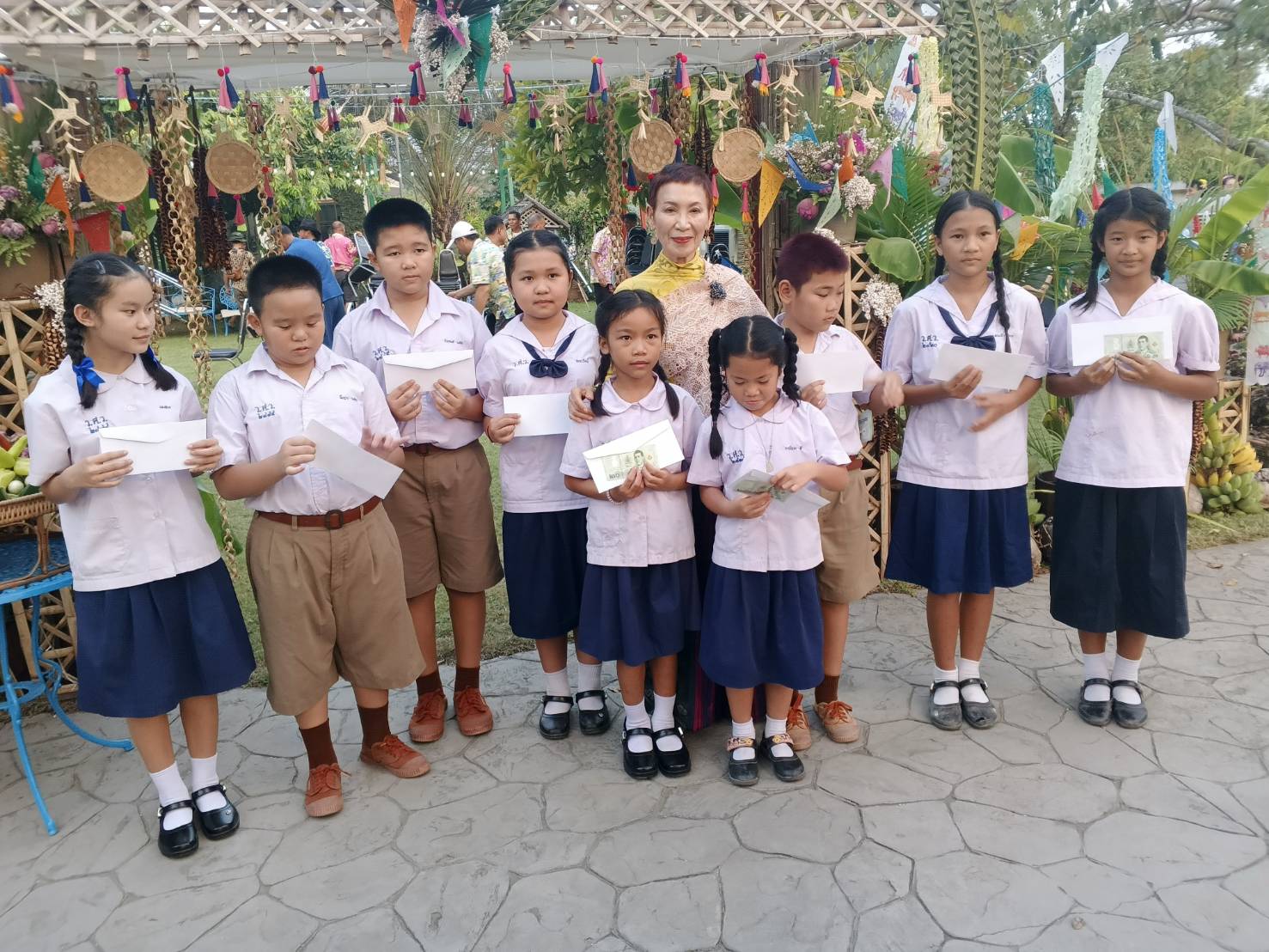 ต่อมาพระเทพรัตน์นายก ได้เทศนาให้ศีลให้พรแก่ผู้ร่วมงานเนื่องในวันสงกรานต์ พร้อมมอบวัตถุมงคลและธนบัตร 20 บาทเพื่อความเป็นสิริมงคล จากนั้นเป็นพิธีสระเกล้าดำหัวผู้สูงอายุกว่า 100 คน พร้อมมอบเงินช่วยเหลือ 500 บาท/คน และมอบทุนการศึกษาแก่เด็กนักเรียนตามลำดับ