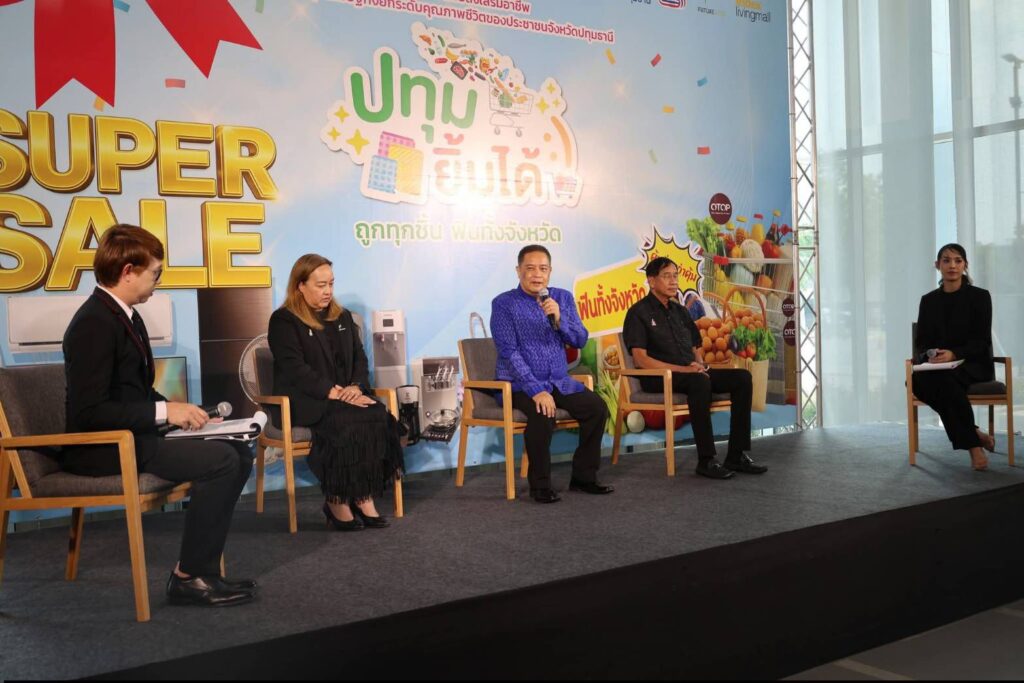 เมื่อวันที่ 23 เมษายน 2569 เวลา 14.00 น. นายเอกวิทย์ มีเพียร ผู้ว่าราชการจังหวัดปทุมธานี พร้อมด้วย พล.ต.ท.คำรณวิทย์ ธูปกระจ่าง นายกองค์การบริหารส่วนจังหวัดปทุมธานี คุณณัฐรินทร์ พยุงวงศ์ รองกรรมการผู้จัดการสายการตลาดและพัฒนาธุรกิจ ศูนย์การค้าฟิวเจอร์พาร์คและสเปลล์ ร่วมแถลงข่าว “ปทุมฯ ยิ้มได้ ถูกทุกชิ้น ฟินทั้งจังหวัด” งานมหกรรมสินค้าเพื่อส่งเสริมอาชีพและกระตุ้นเศรษฐกิจ ยกระดับคุณภาพชีวิตของประชาชนจังหวัดปทุมธานี ณ Index Living Mall สาขารังสิต อำเภอธัญบุรี จังหวัดปทุมธานี
