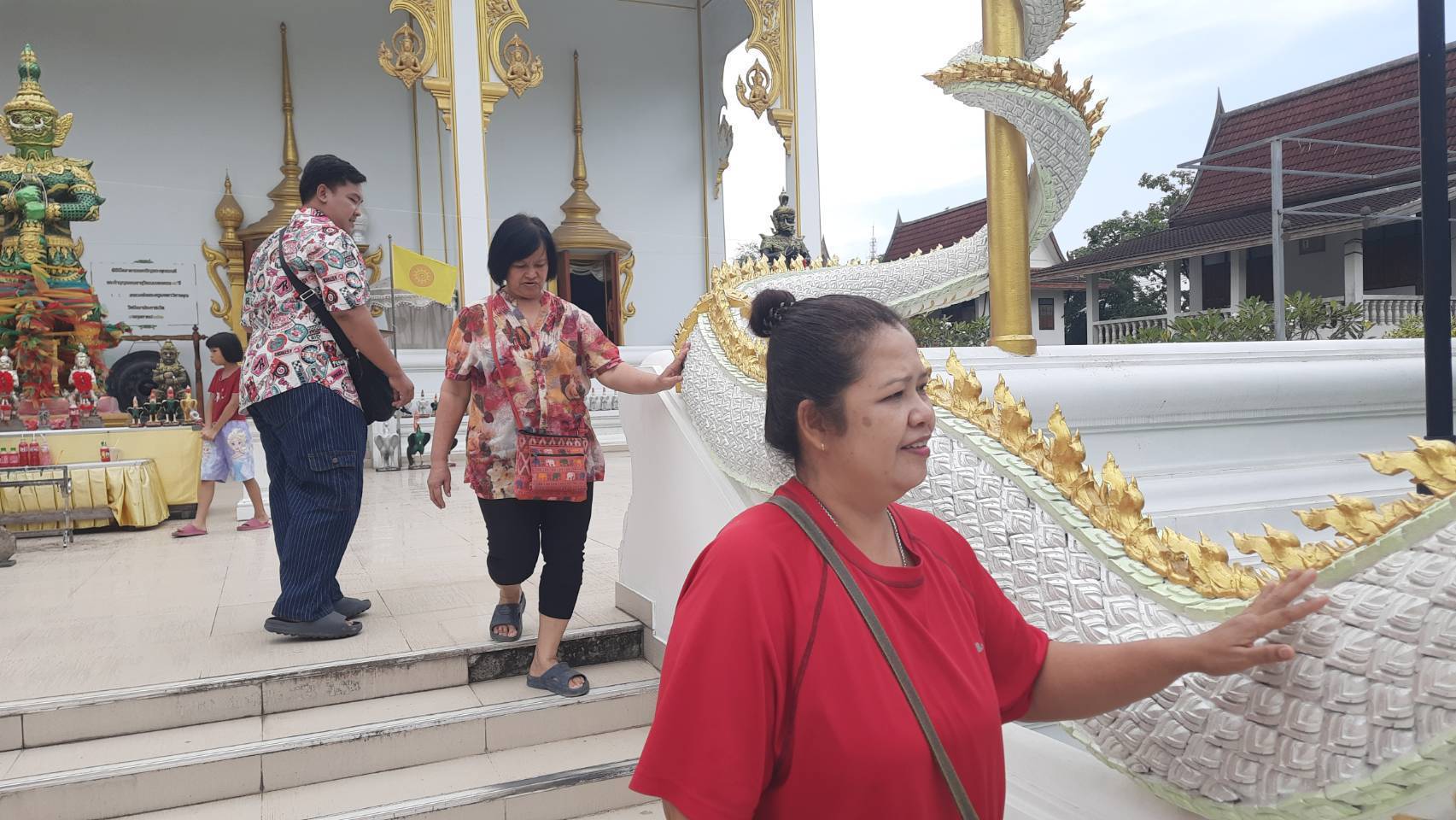 ด้านนางเพ็ญใจ อ่อนแก้ว พร้อมครอบครัวนำข้าวสาร 9 ถุง น้ำดื่ม 12 แพค พร้อมเครื่องเซ่นชุดใหญ่ เดินทางมาจากอ.อุทัย จ.พระนครศรีอยุธยา มาแก้บนท้าวเวสสุวรรณ หลังได้โชคก้อนโต นางเพ็ญใจกล่าวว่าตนเองถูกรางวัลมา 3 งวดแล้วในงวดล่าสุดตนเองถูกรางวัลเลขท้าย 3 ตัว ได้เงินกว่า 50,000 บาทวันนี้จึงเดินทางมาแก้บนดังกล่าวในงวดนี้ได้เลข 55 กลับไปลุ้นโชคงวดที่ 4 ต่อไปนางเพ็ญใจยังกล่าวอีกว่าตนเองนั้นเคยมาขอพรกับพ่อปูพญานาคศรีสุทโธ แม่ยาศรีปทุมมา ว่าขอให้หายจากโรคมะเร็ง ซึ่งตนเองป่วยในระยะที่ 2 ปรากฎว่าหลังจากนั้นไม่นานตนเองก็เข้ารับการฝ่าตัดและได้รับการรักษาจนหายจากโรคร้ายดังกล่าว ตนเองนั้นเชื่อว่าเพราะความศัทธาและความศักดิ์สิทธิ์ของพ่อปูพญานาคศรีสุทโธ แม่ยาศรีปทุมมา ทำให้ตนเองนั่นหายจากโรคร้ายนี้