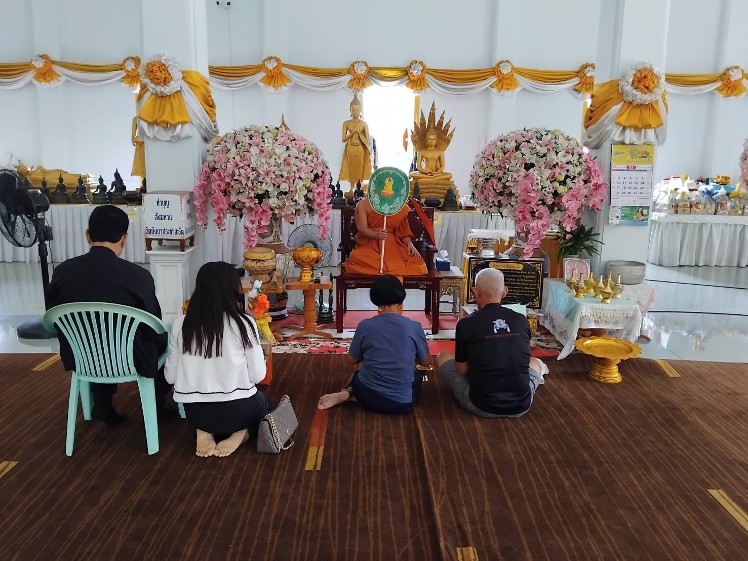 ด้านนายปราโมท์ คำอินทร์ พร้อมครอบครัวนำน้ำส้ม 300 ชุด และ ขนม 300 ชุดนำมาออกโรงทานหลังจากท้าวเวสสุวรรณให้โชคถูกหวยรับทรัพย์ 100,000 บาท โดยนายปราโมท์ กล่าวว่าตนเองมีโชคเกิน 10 ครั้งแล้วจากการมาขอโชคลาภจากท้าวเวสสุวรรณ โดยหากได้โชคตนเองก็จะนำอาหารหรือเครื่องดื่ม ขนม นำมาออกโรงทานทุกครั้ง ซึ่งหาก 10 ครั้งที่ได้โชคคาดว่าเกินหลักล้านบาทแล้ววันนี้จึงได้นำน้ำส้มขนมมาออกโรงทานพร้อมกับจุดธูปเสี่ยงทายได้เลข 61 จะนำไปเสี่ยงโชคอีกครั้ง
